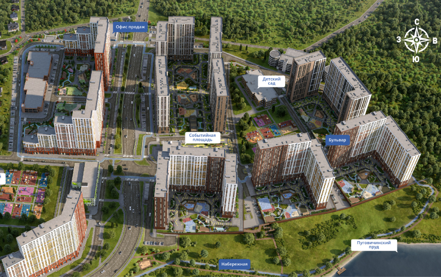 находится лесной массив, река и пруд с обустроенной набережной. Будущим жителям