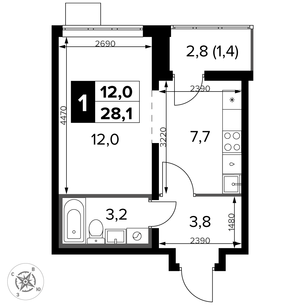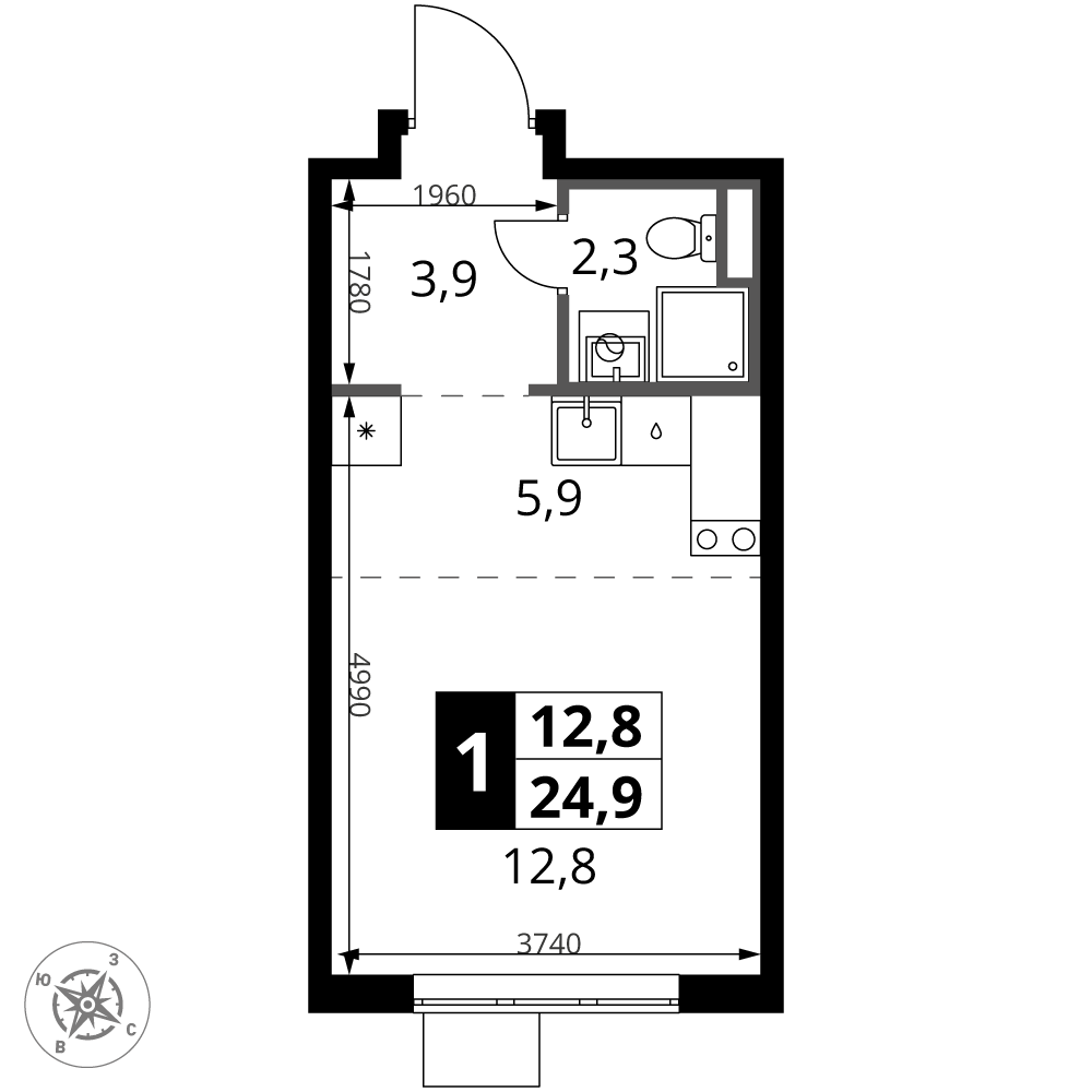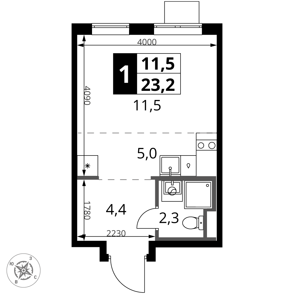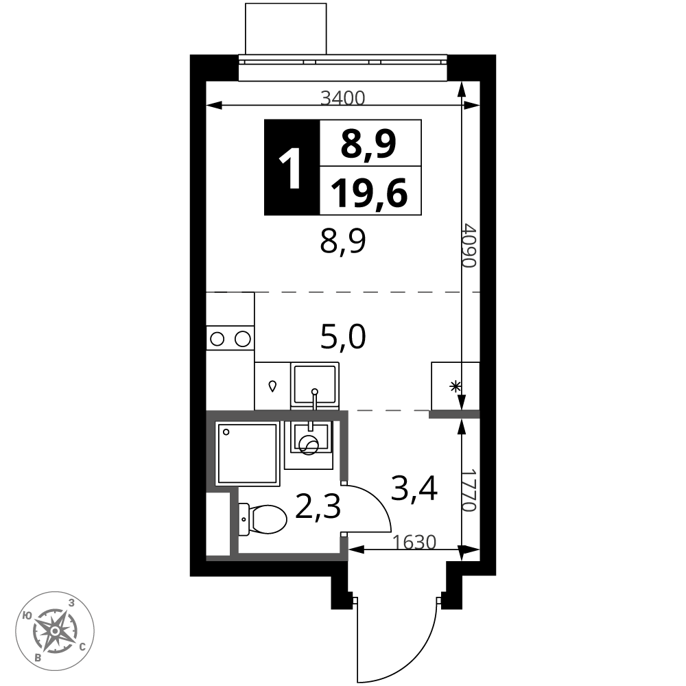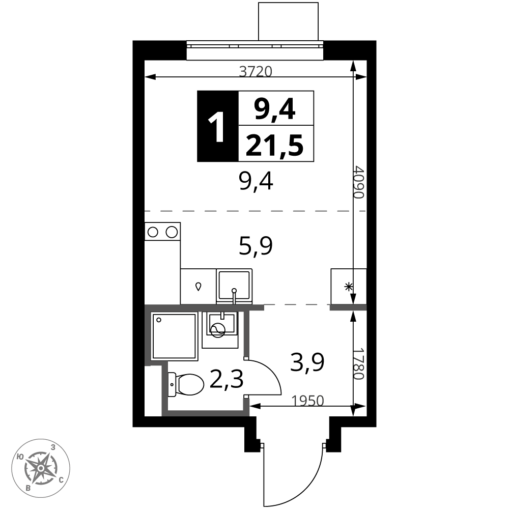 • 1 км до