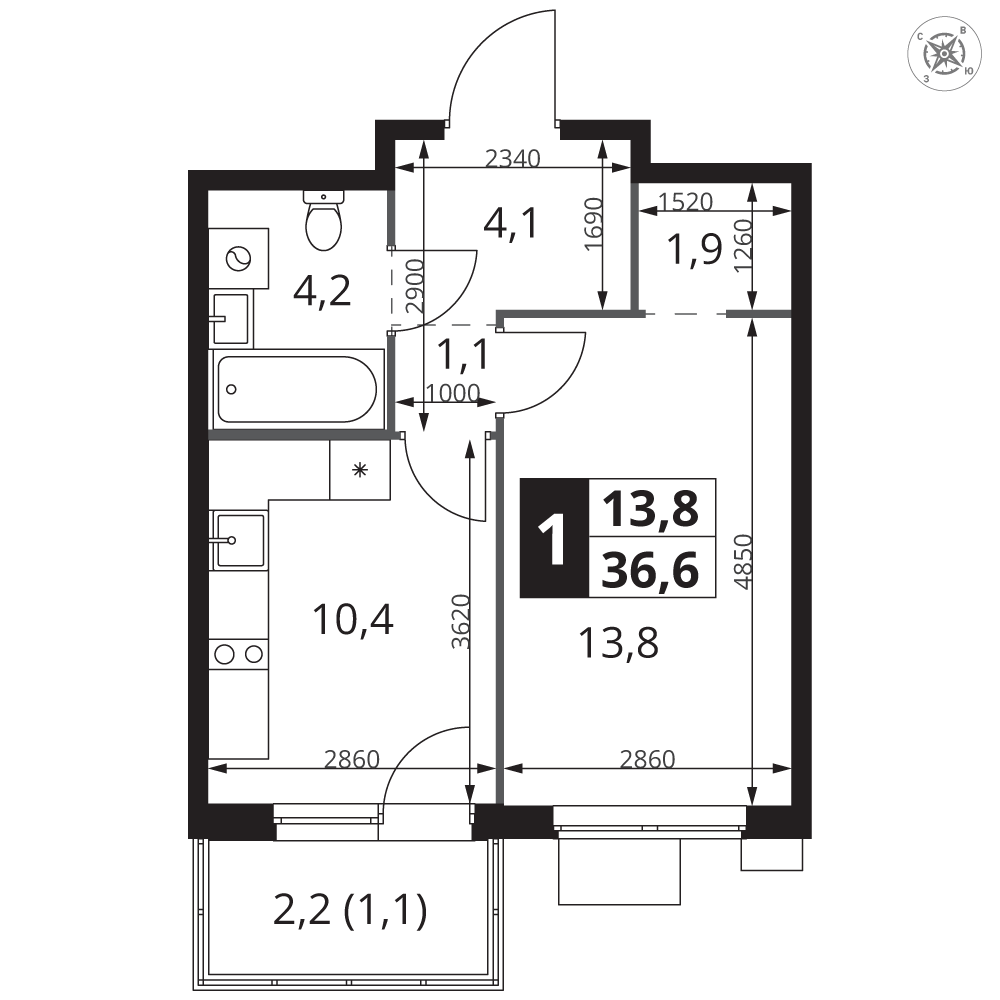 Площадь 36.60 м²