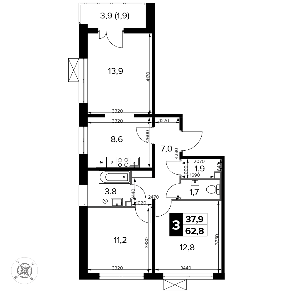 Площадь 62.80 м²