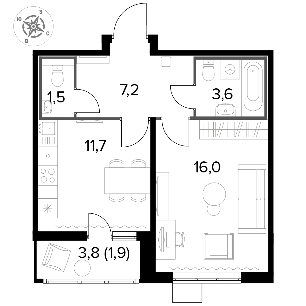 Площадь 41.90 м²