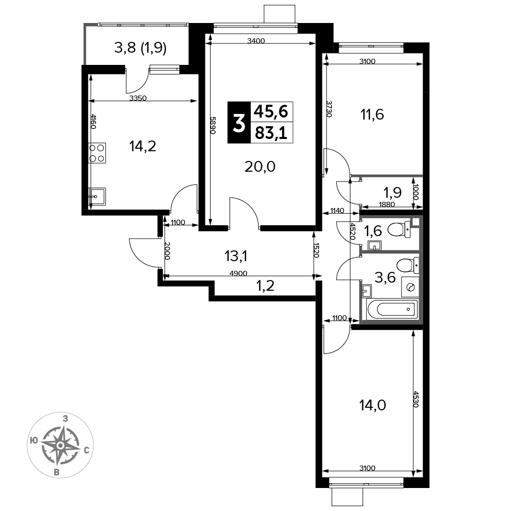 Площадь 83.10 м²