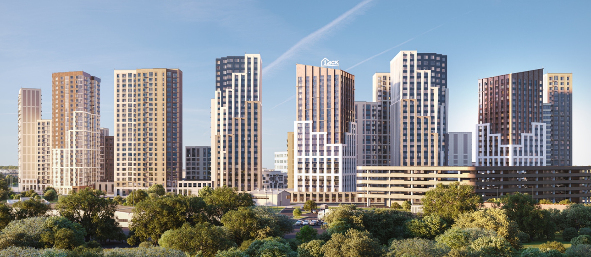 комплекса войдут 7 разноэтажных корпусов (до 25 эт.), муниципальные школа на