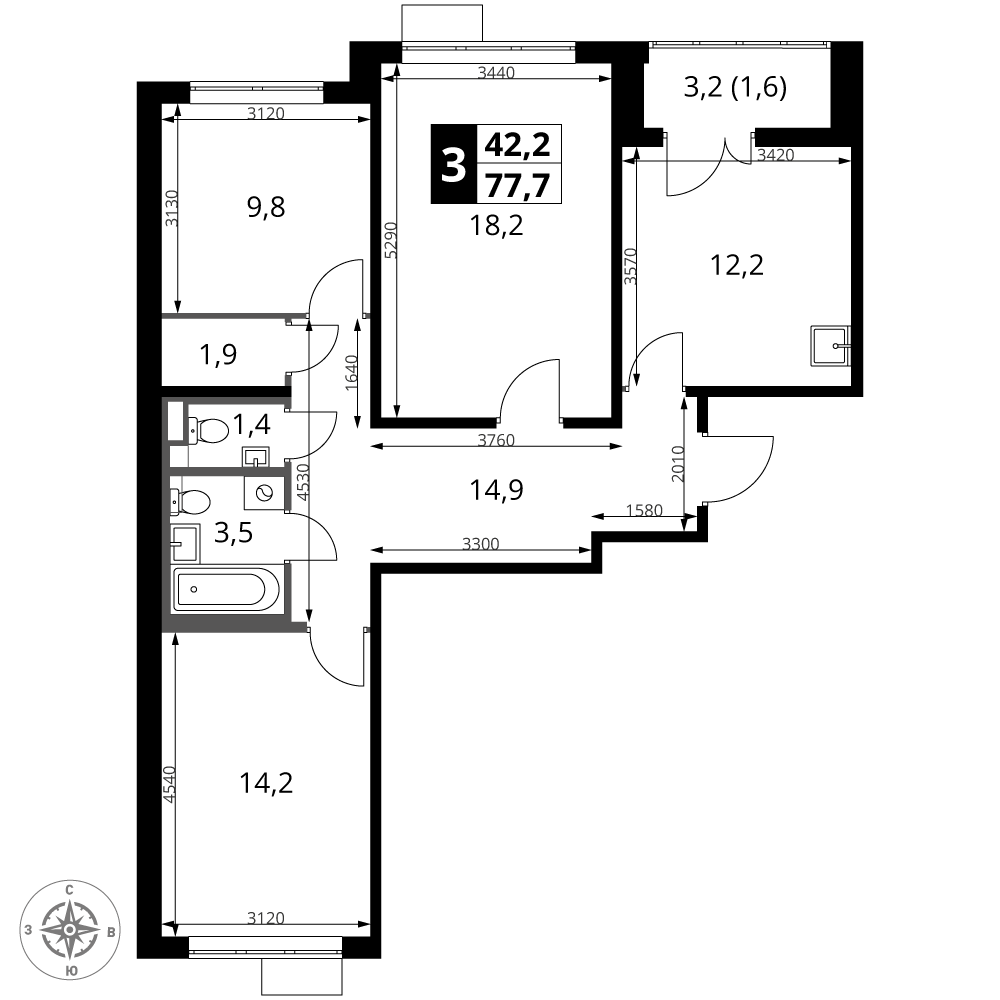 Площадь 77.70 м²