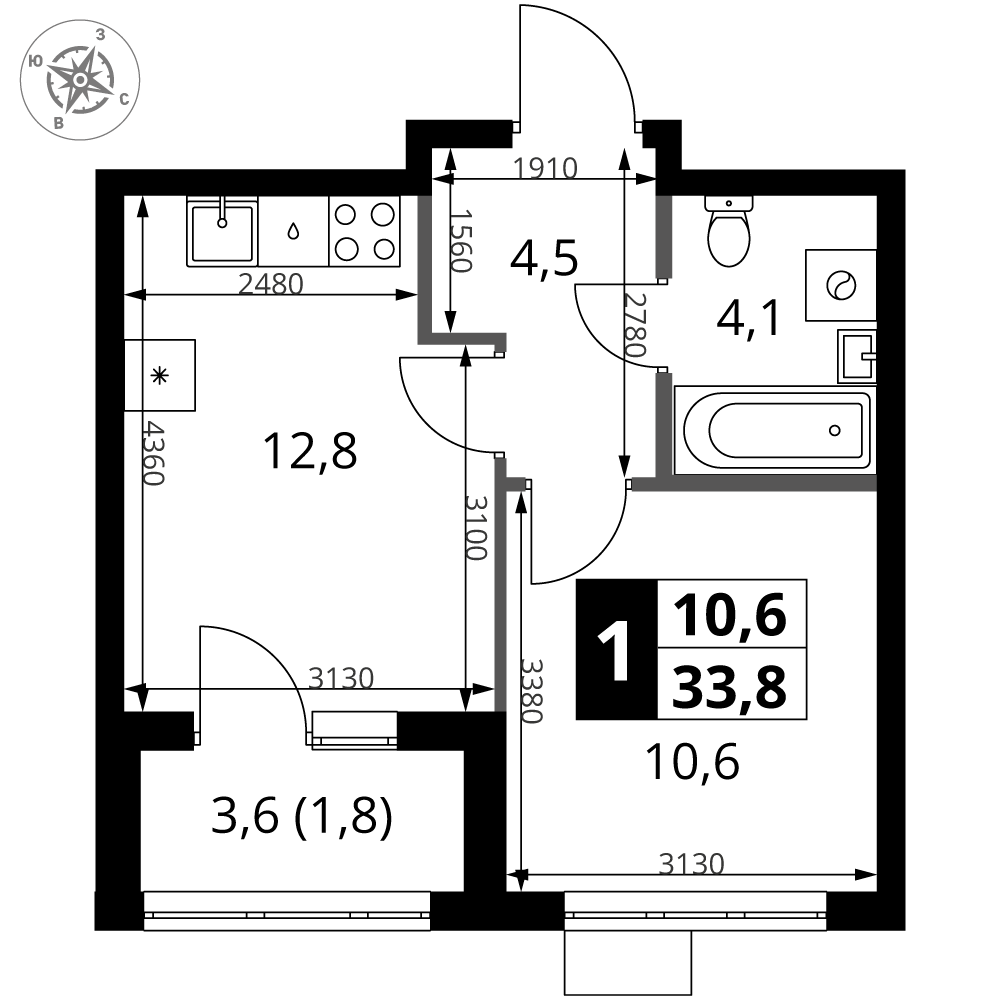Площадь 33.80 м²