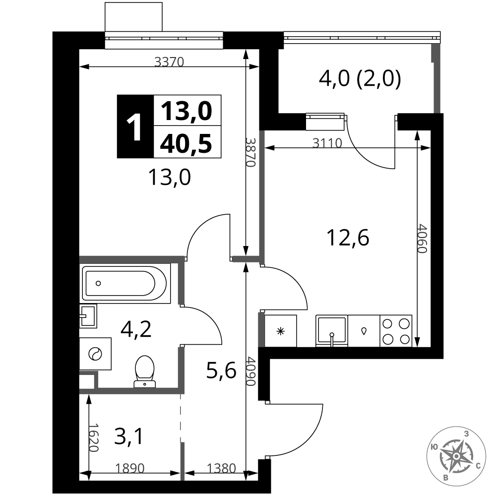 Площадь 40.50 м²
