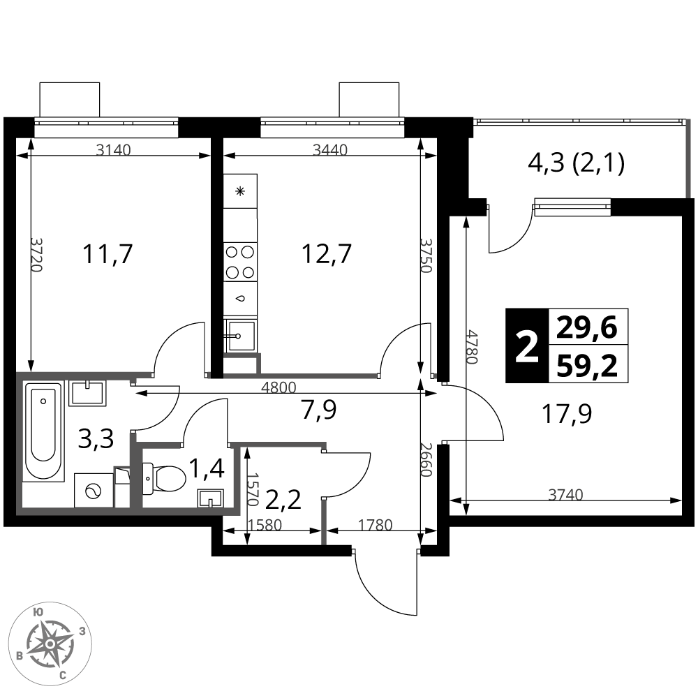 Площадь 59.20 м²