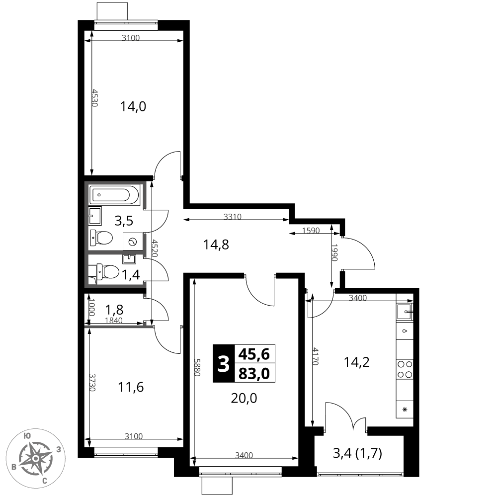 Площадь 83.00 м²