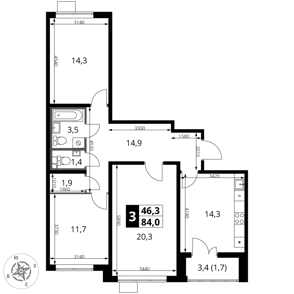 Площадь 84.00 м²