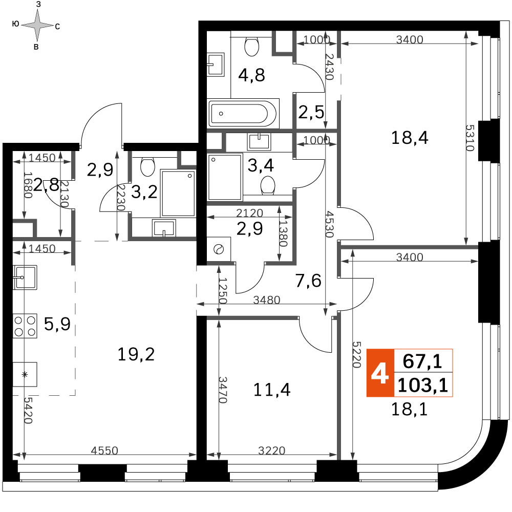 • Футуристичные закругленные окна с широкими удобными подоконниками