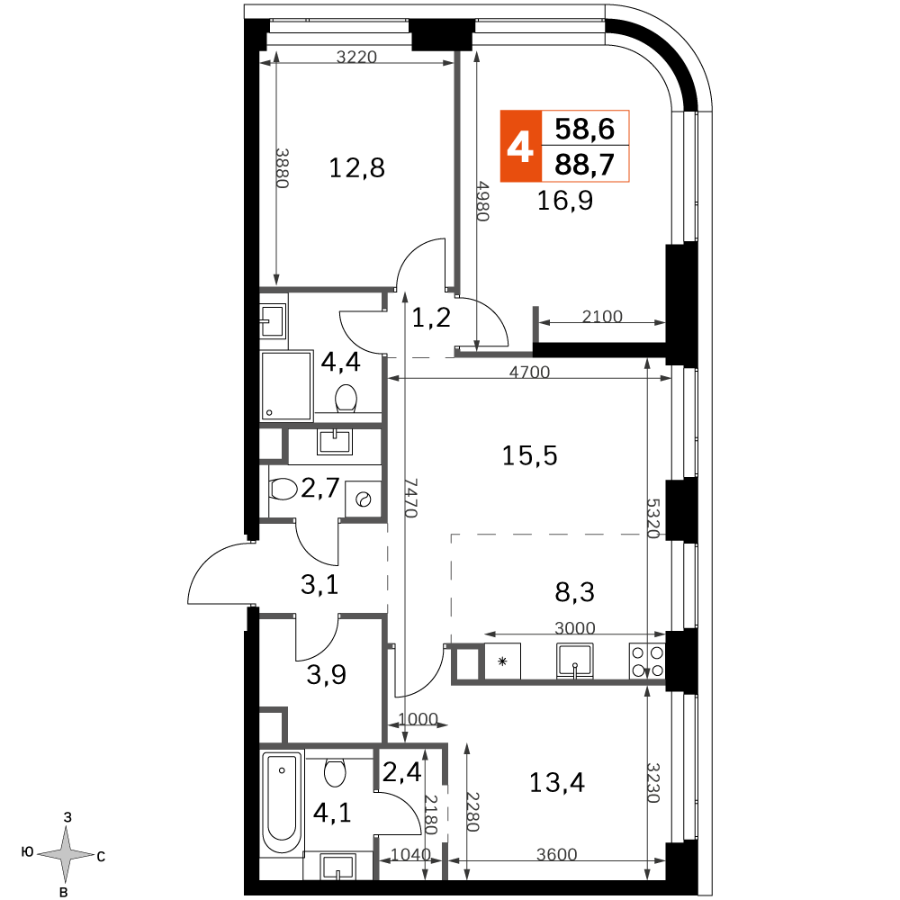 Площадь 88.70 м²
