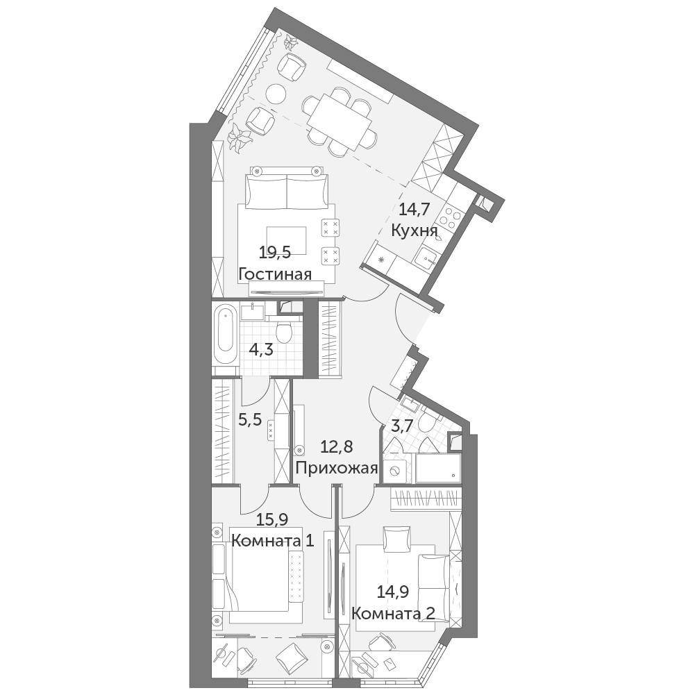 Площадь 91.30 м²