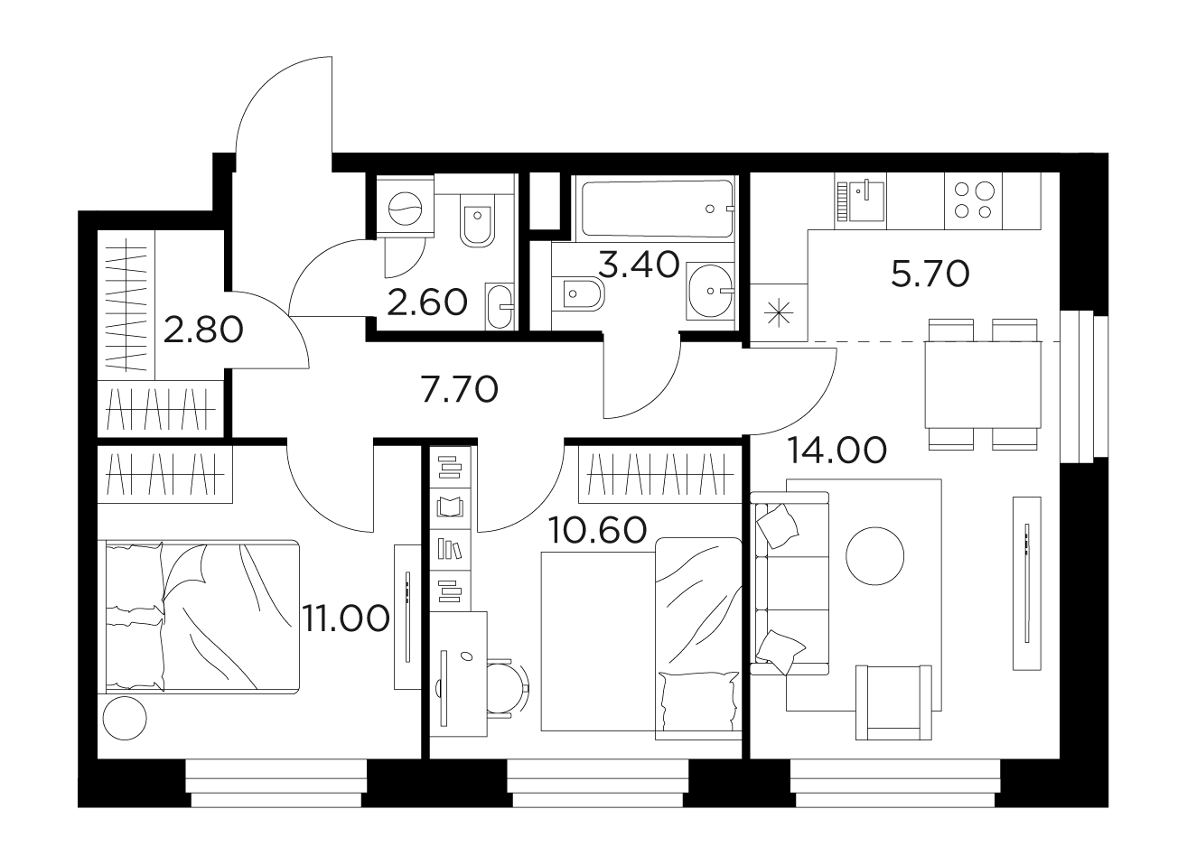 Площадь 57.80 м²