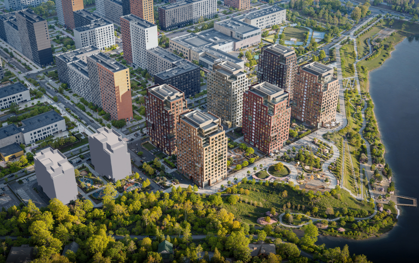 квартала работало российское бюро KK ARCHSTUDIO. Силуэт квартала строится на