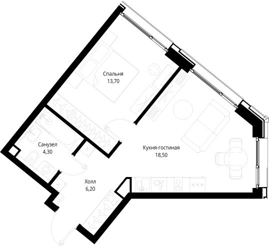 Площадь 42.70 м²