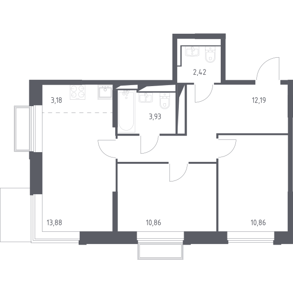 Площадь 57.32 м²