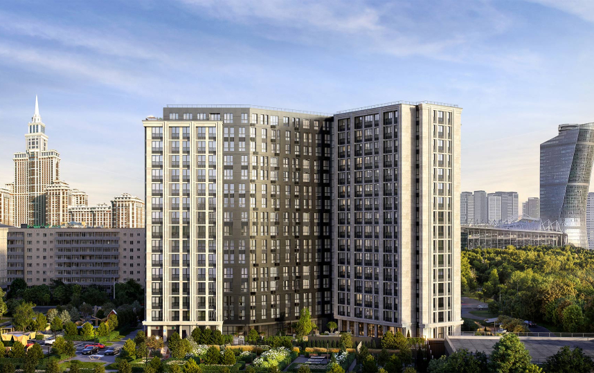 Зорге» — это две 16-этажных секции дома соединенные лобби с дизайнерской