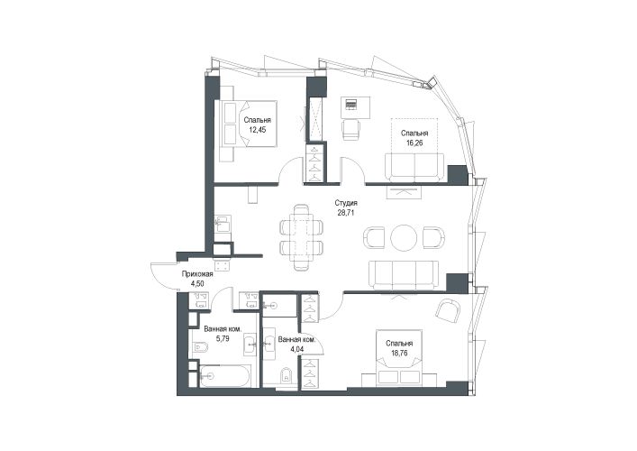 Площадь 90.87 м²