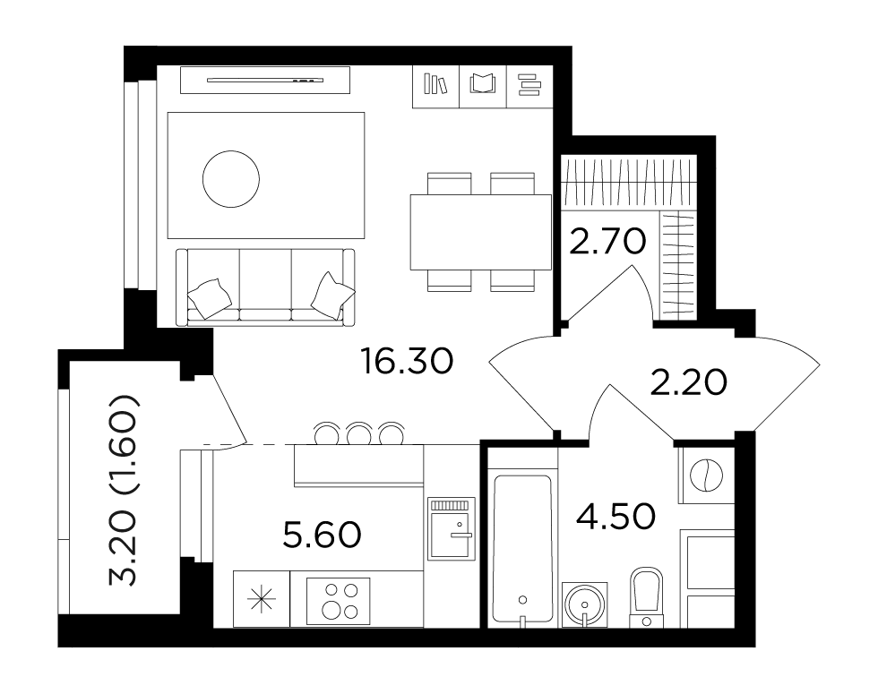 Площадь 32.90 м²