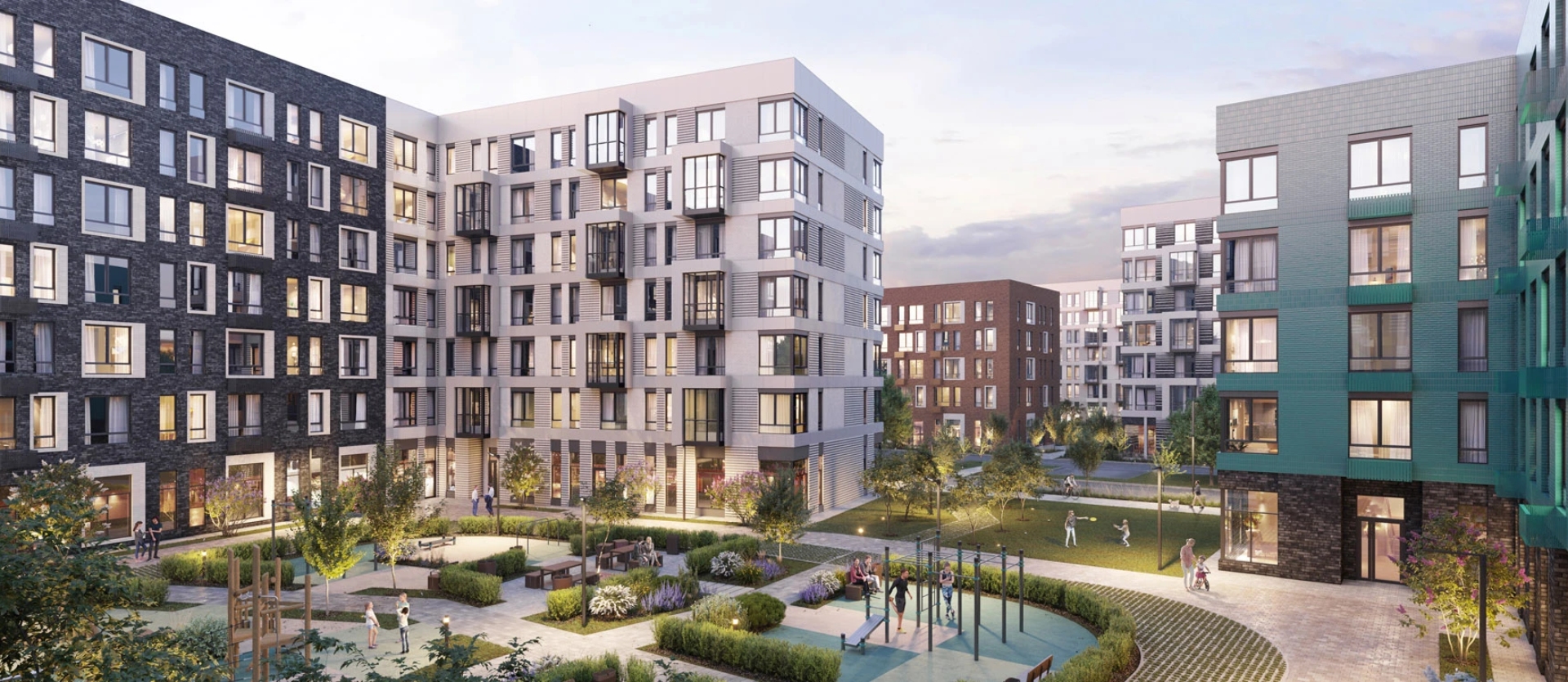 комплекс включает дома от 5 до 12 этажей. Переменная этажность создает