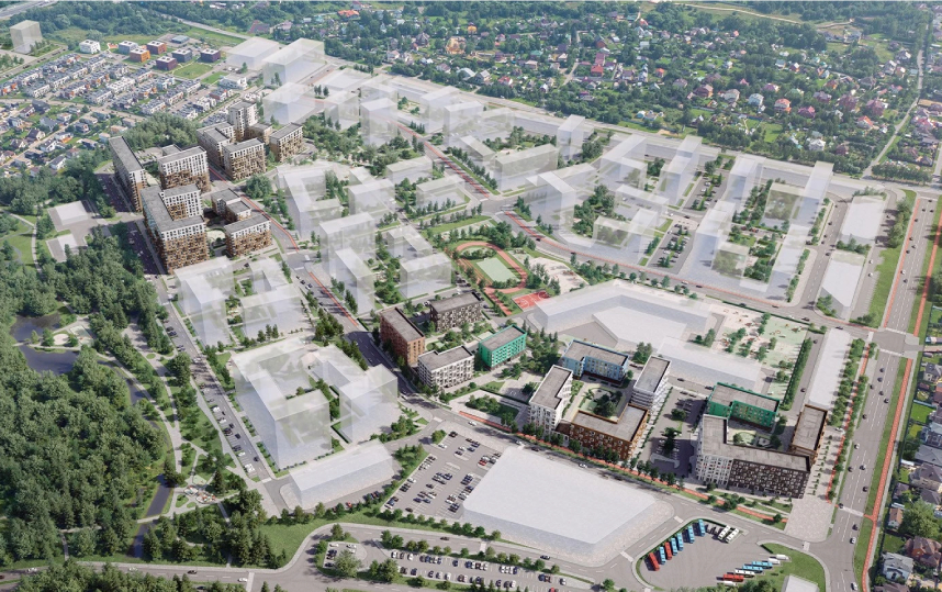 территории предусмотрены школа, два детских сада, станция скорой помощи. Во