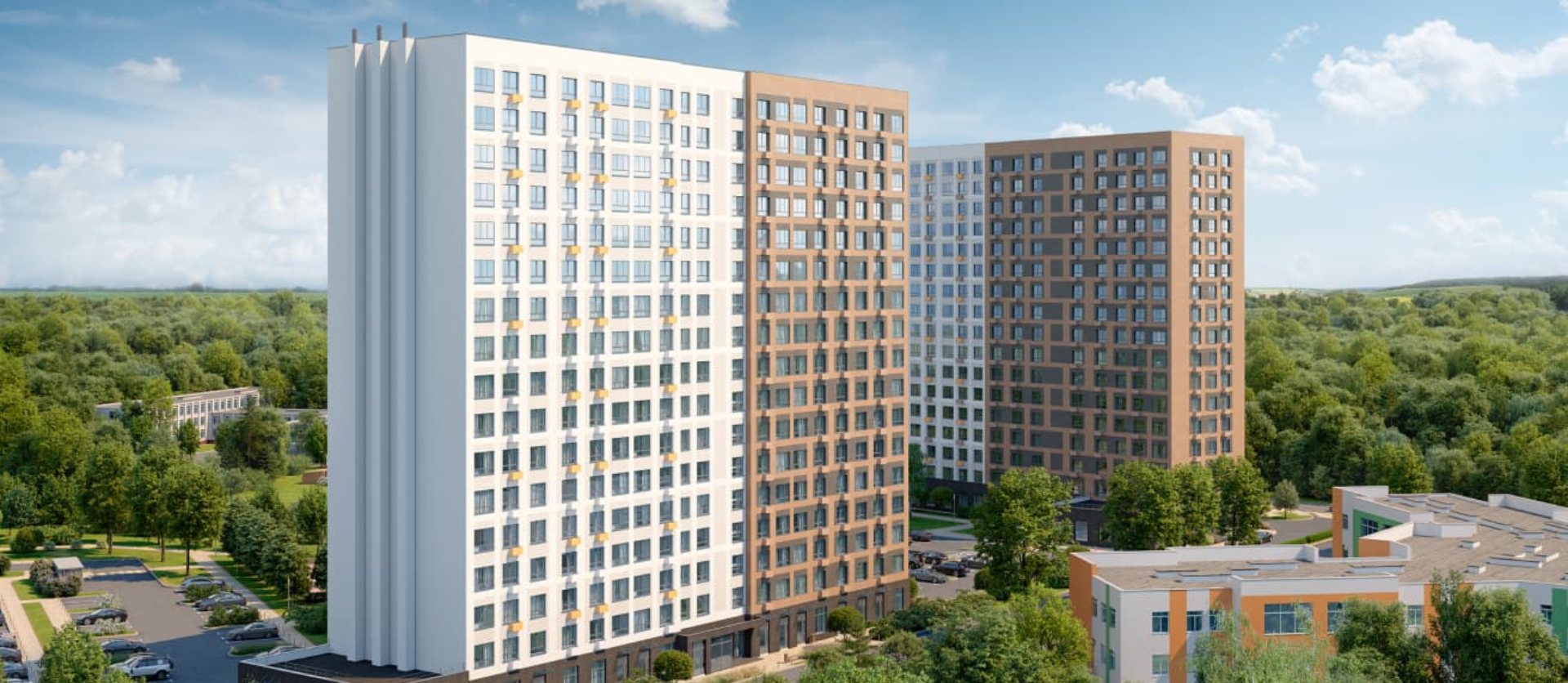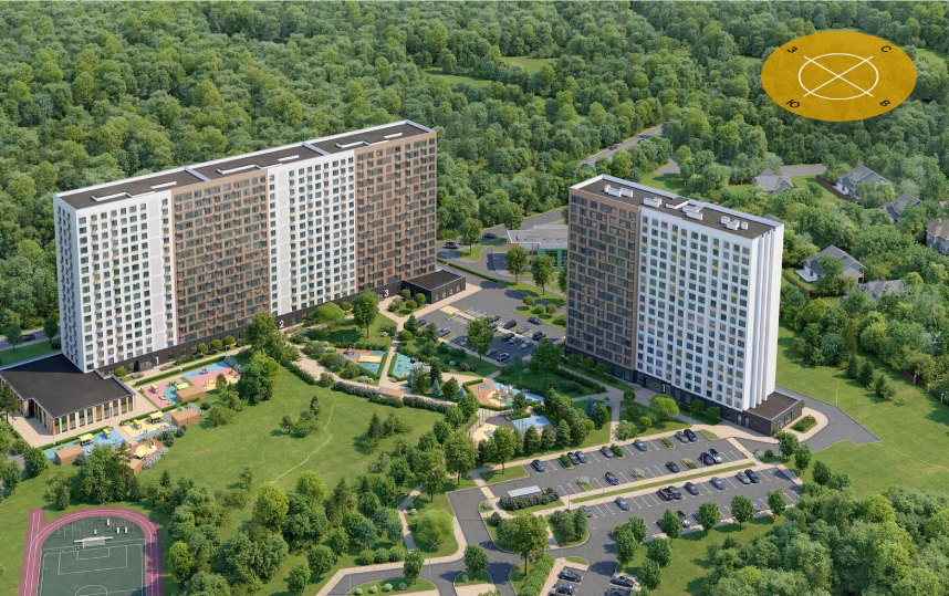– это два монолитных 17-ти этажных дома с собственным детским садом на 85 мест,