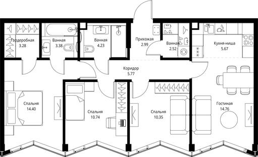 Продажа 3-комн. квартиры, 78.09 м2