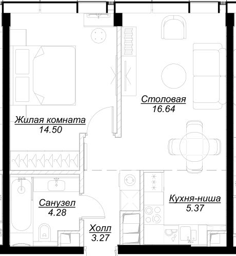 Площадь 44.07 м²