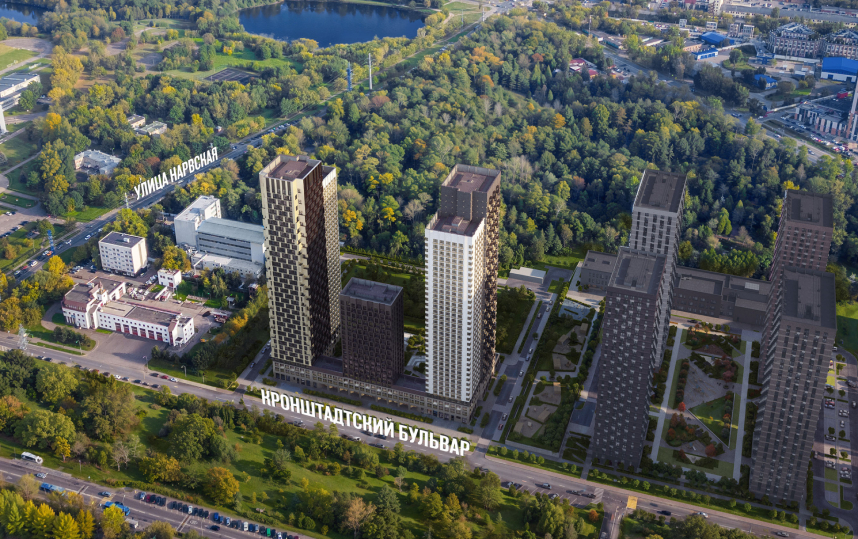 — квартал в зелёном районе Москвы. Три корпуса с продуманной архитектурой