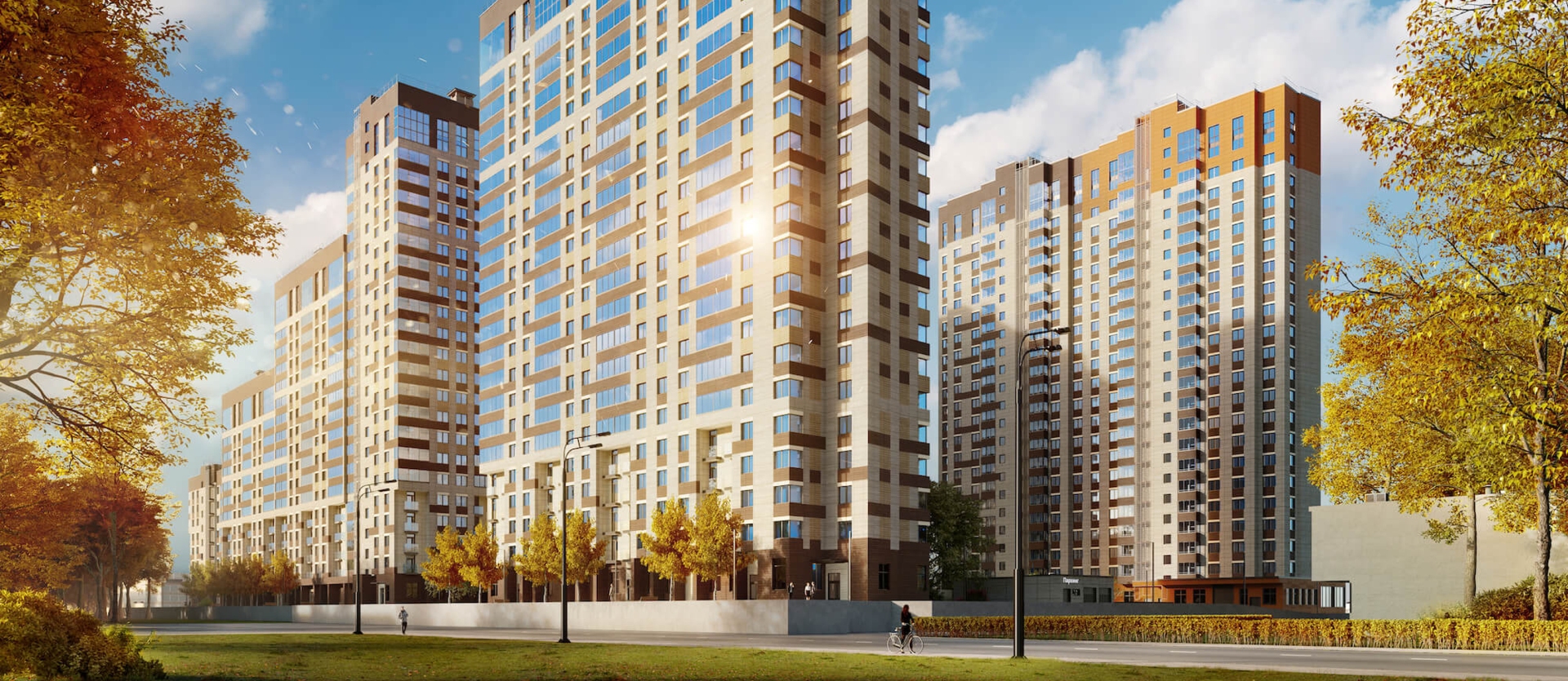 детские площадки, велодорожки, прогулочные аллеи и тихие беседки.