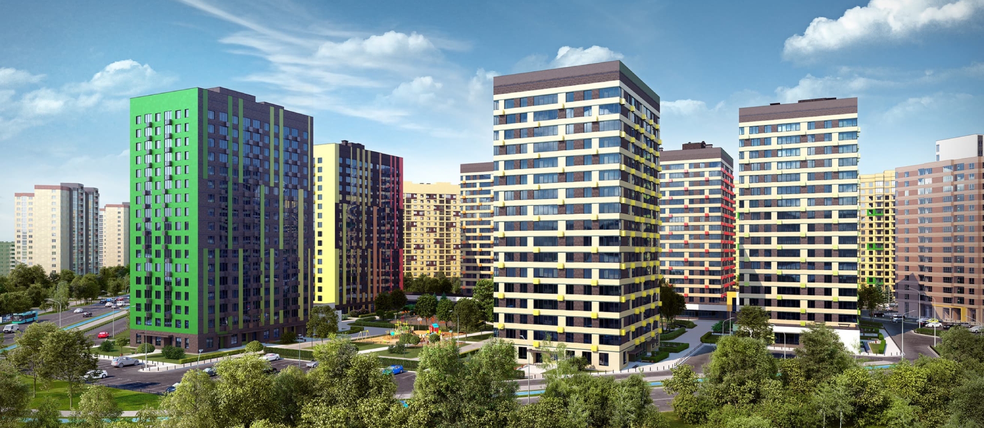 корпуса выбрана своя цветовая гамма. Объединяет кварталы общая современная