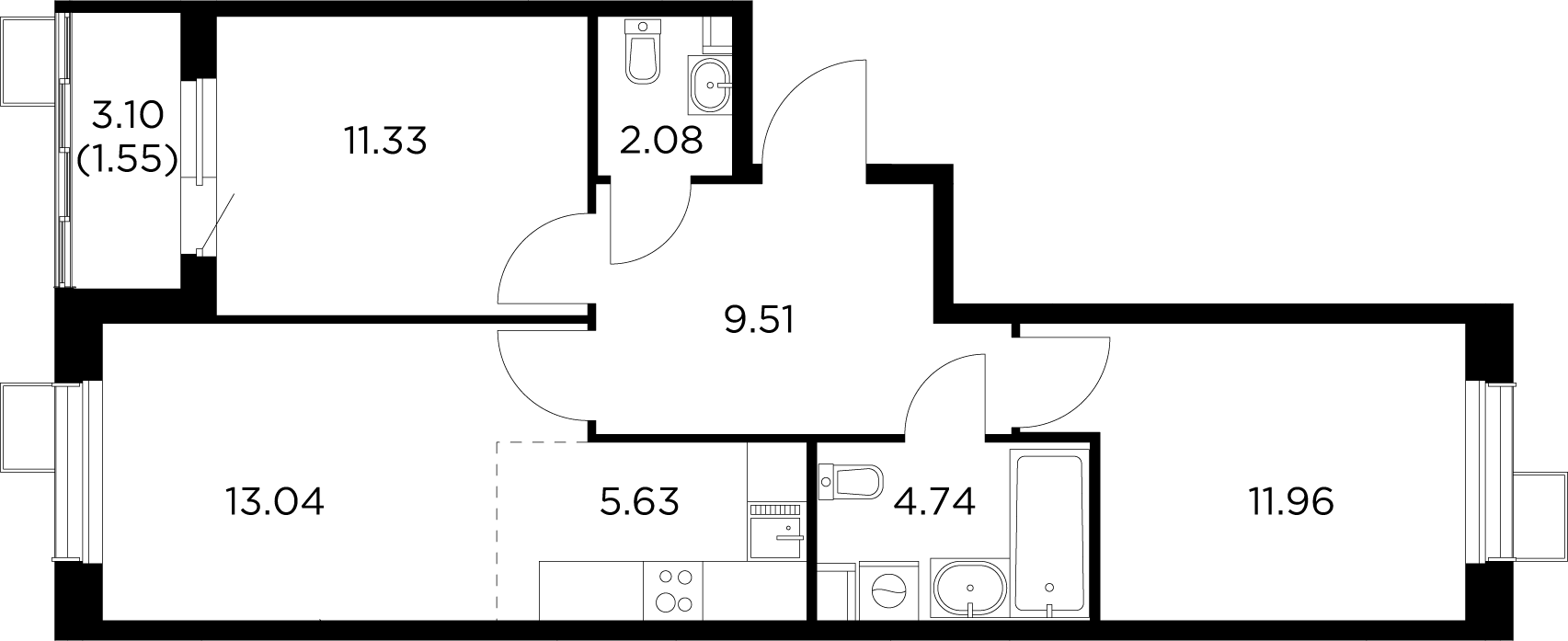 Площадь 59.84 м²