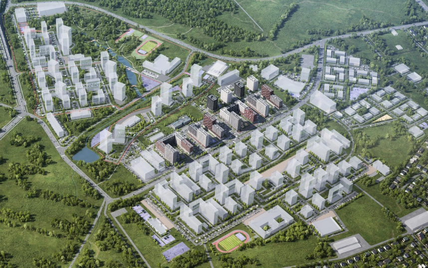 комплекс включает более 30 урбан-блоков. Дома высотой 10,12,16 и 17 этажей