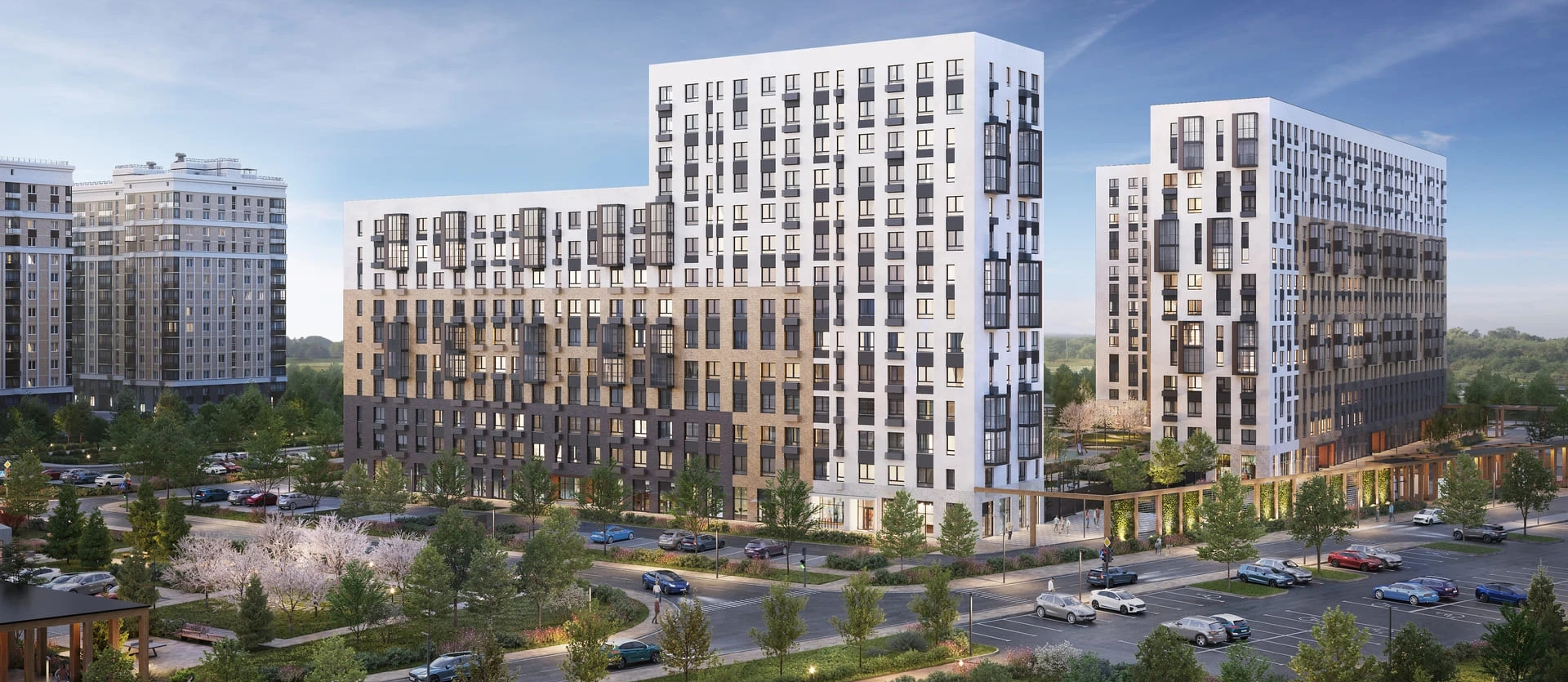 многолетних деревьев и кустарников украшают жилой комплекс круглый год.