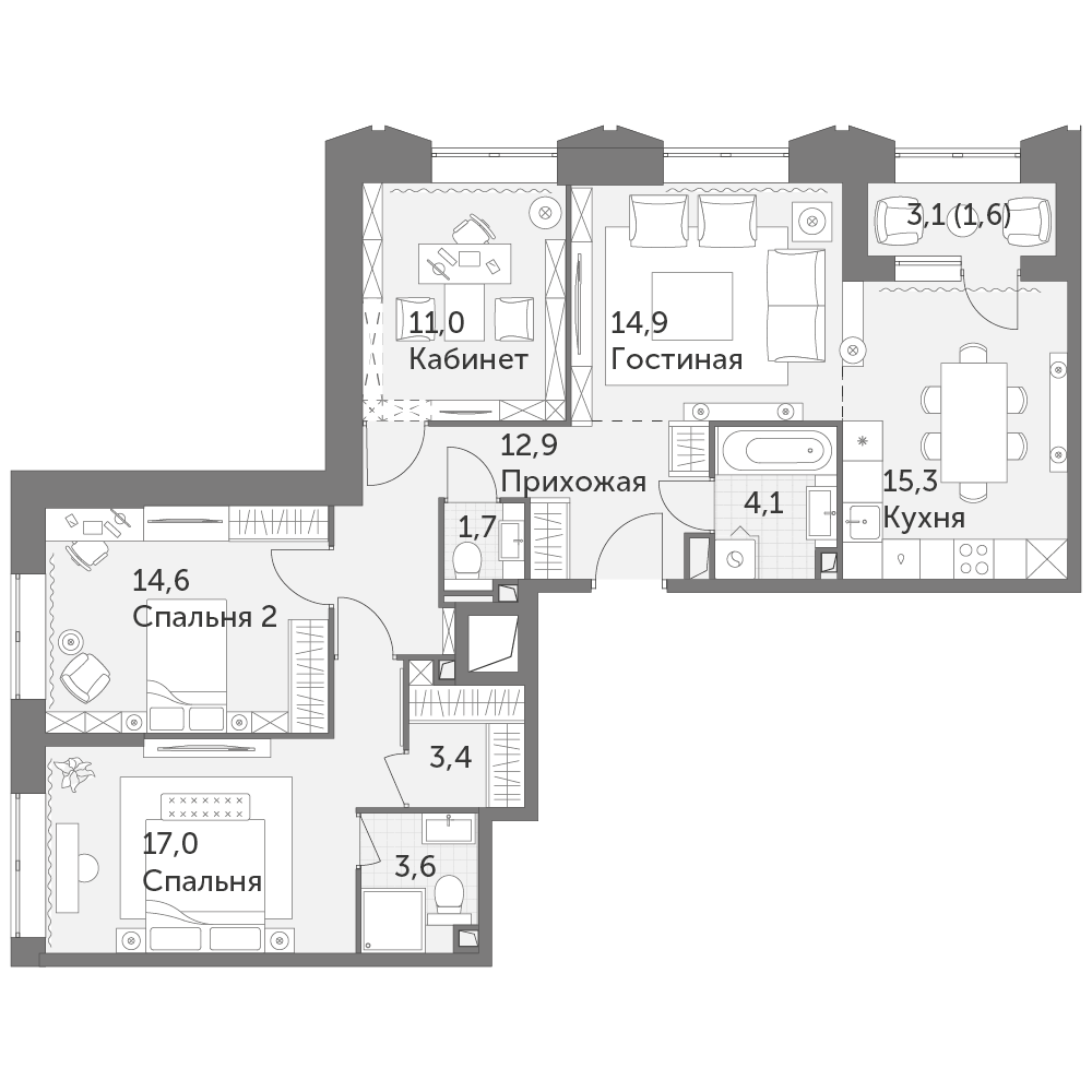 Большинство квартир предполагает наличие постирочной комнаты, которая позволит оставить детали быта за кадром. Здесь можно легко установить стиральную и сушильную машины, гладильную доску и шкафы для хранения. Высота потолков в квартирах с чистовой отделкой — 3,08 м. Верхние этажи второй и третьей башен отведены под просторные двухуровневые пентхаусы. Изюминка этих помещений — кухни-гостиные со вторым светом. Панорамное остекление пентхаусов открывает потрясающие виды на ВДНХ, Останкинскую башню, «Москва-Сити» и дает почувствовать себя на вершине мира.