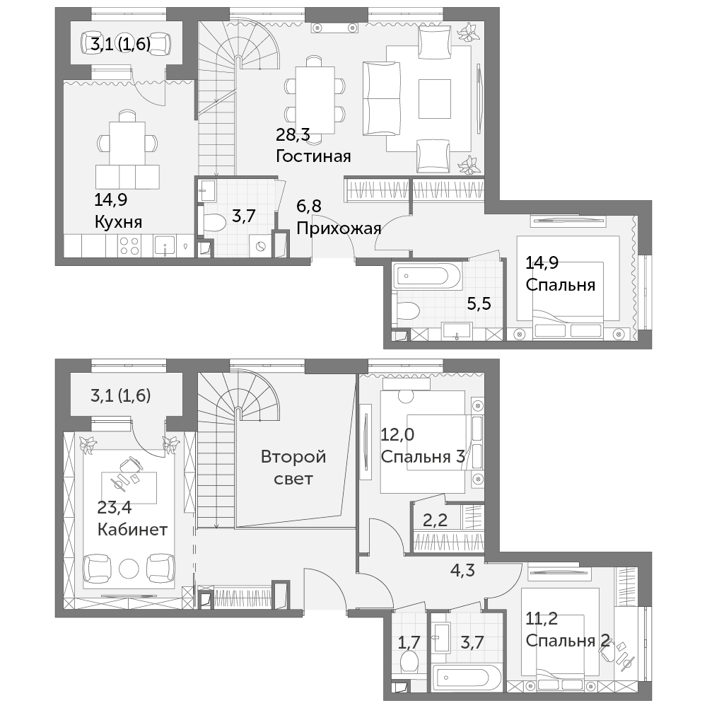 Большинство квартир предполагает наличие постирочной комнаты, которая позволит оставить детали быта за кадром. Здесь можно легко установить стиральную и сушильную машины, гладильную доску и шкафы для хранения. Высота потолков в квартирах с чистовой отделкой — 3,08 м. Верхние этажи второй и третьей башен отведены под просторные двухуровневые пентхаусы. Изюминка этих помещений — кухни-гостиные со вторым светом. Панорамное остекление пентхаусов открывает потрясающие виды на ВДНХ, Останкинскую башню, «Москва-Сити» и дает почувствовать себя на вершине мира.