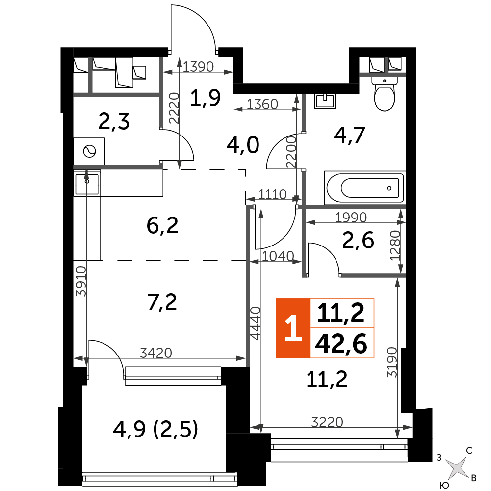 Площадь 42.60 м²