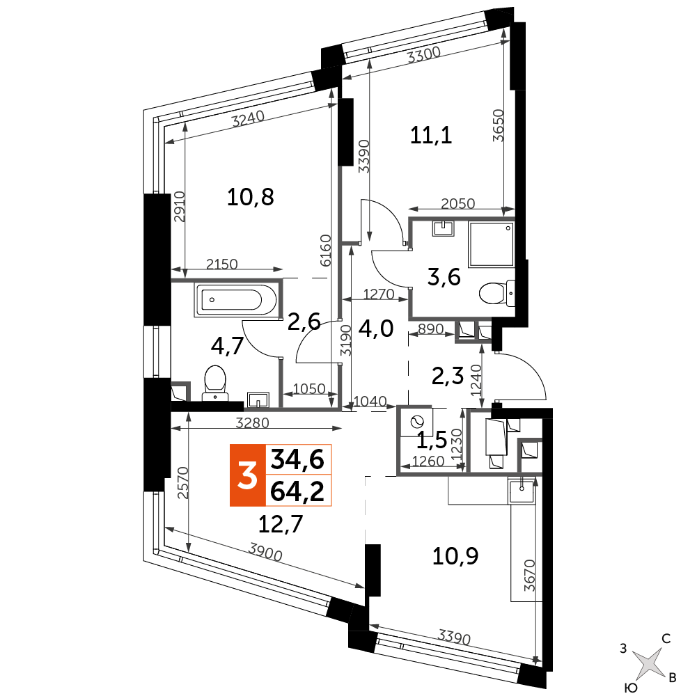 Площадь 64.20 м²