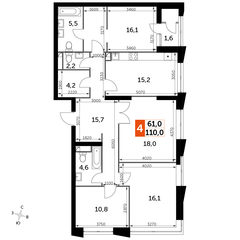 Четыре корпуса переменной этажности от 12 до 44 этажей с шестью башнями-доминантами делают абрис комплекса очень похожим на ведущие мировые столицы и дарят его жителям особые виды на город.
