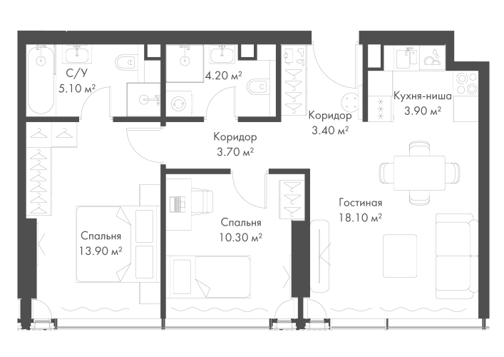 Площадь 62.60 м²