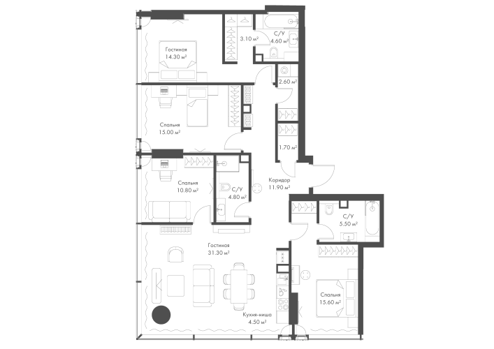 Дизайнерская концепция представляет собой современную интерпретацию классики, для которой характерны элегантность и минимализм в деталях, а также использование контрастных оттенков.