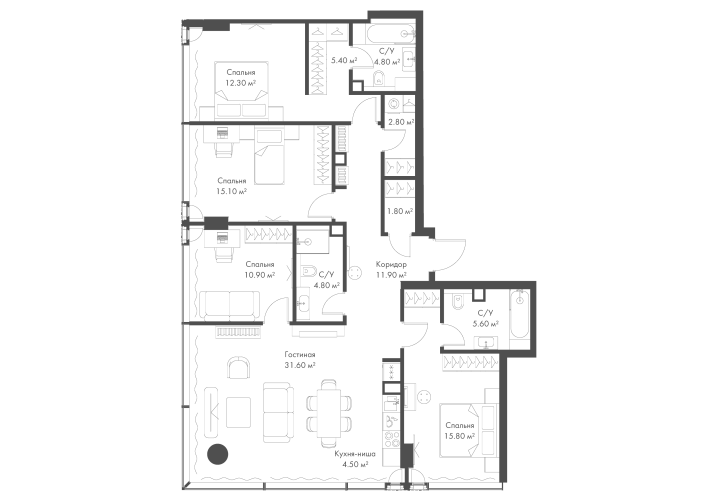 Площадь 127.30 м²