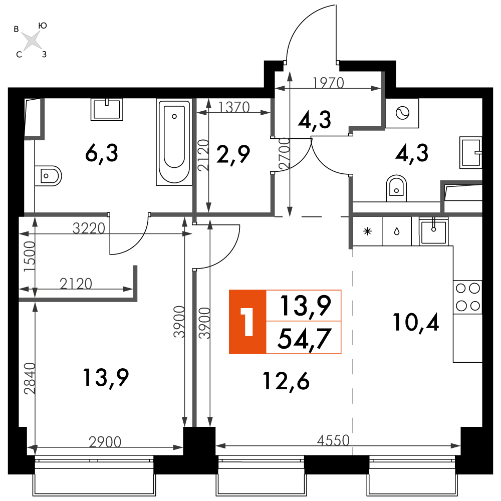 Площадь 54.70 м²