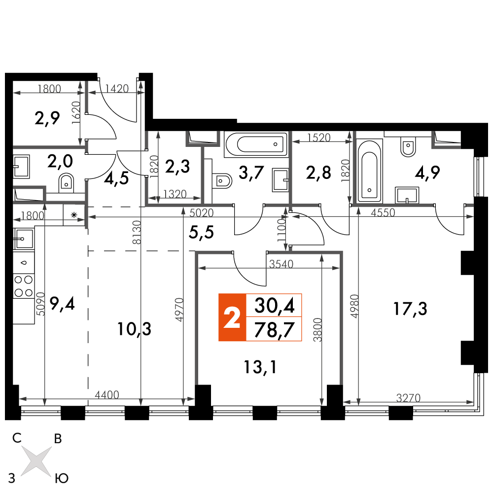 Площадь 78.70 м²