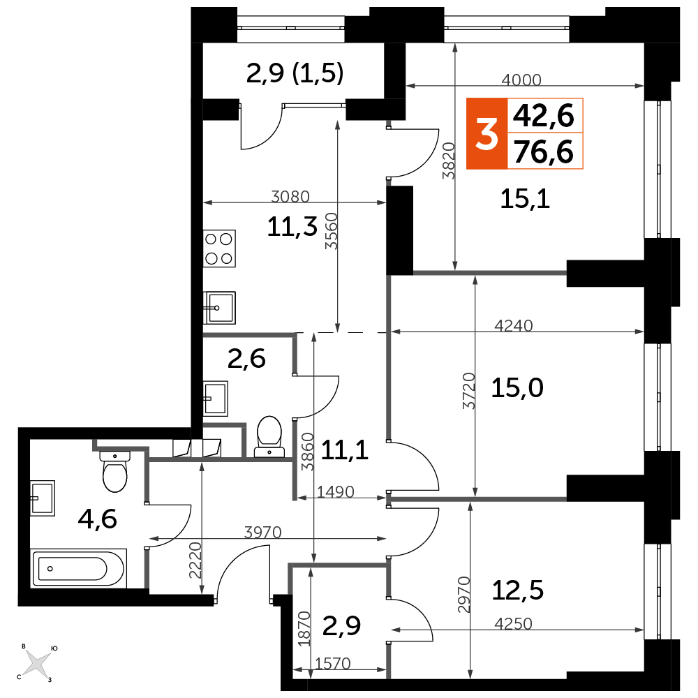 Площадь 76.60 м²