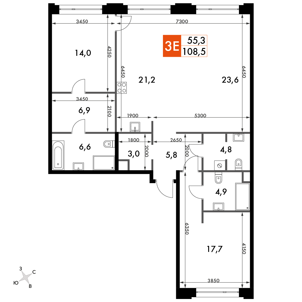 Площадь 108.50 м²