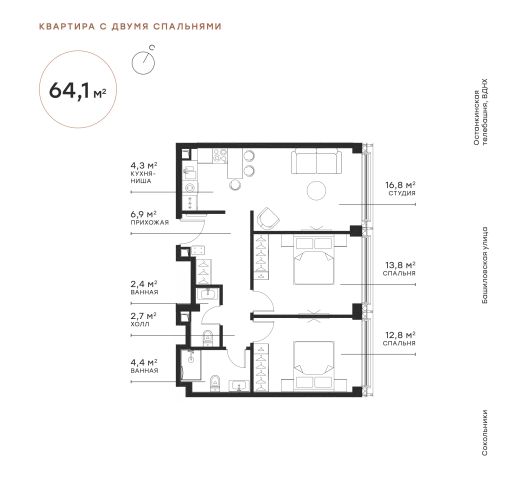 Площадь 64.12 м²