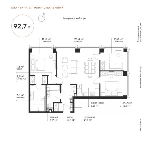 В пешей доступности — вся инфраструктура Савеловского и Тимирязевского районов: супермаркеты, детские сады, школы, поликлиники, кафе, фитнес-клубы, деловые центры. И что главное — рядом центр столицы, где есть все возможности для деловой жизни и свободного времяпрепровождения.