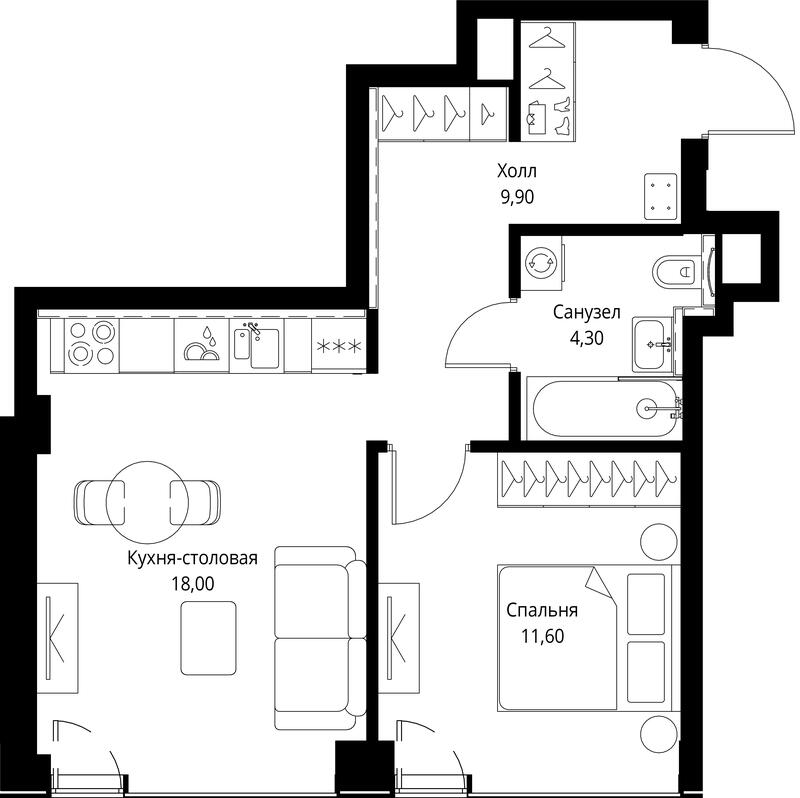 Площадь 43.80 м²