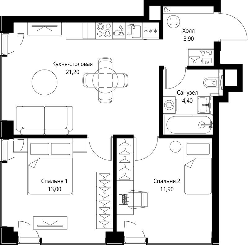 Площадь 54.40 м²